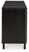Details Made with wood, veneer and engineered wood, Distressed black finish, Metal base with black finish, 3 touch latch doors, 3 adjustable shelves, Assembly required