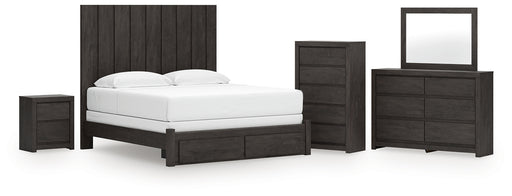 Signature Design by Ashley®Consumer's ChoiceThis king-size panel bed with storage, dresser, mirror, chest of drawers and nightstand is a refined take on barn board beauty. Its complex, replic...