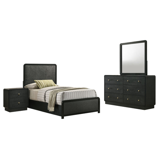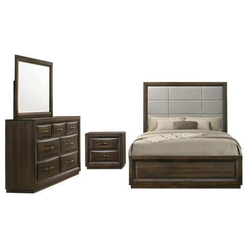 CoasterBedroom set creates a quiet sense of cohesion, pairing an upholstered panel bed with matching case pieces that bring texture and warmth to the room...