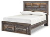 Details B211B1: Made of engineered wood (MDF/particleboard) and decorative laminate, Brown rustic finish with burnt orange and teal accents in a replicated wood grain with authentic touch, 6 smooth-gliding drawers, Drawers lined with faux linen laminate, Dark-tone industrial hardware, Mirror attaches to back of dresser, Assembly required, Includes tipover restraint device, B211B21: Includes bookcase headboard, footboard with storage and rails, Made of engineered wood (MDF/particleboard) and decorative laminate, Brown rustic finish with burnt orange and teal accents in a replicated wood grain with authentic touch, Headboard includes a dimming LED light, 2 smooth-gliding drawers in footboard, Mattress and foundation/box spring available, sold separately, Assembly required, Bed is not compatible with an adjustable base,