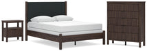 | Details | PCB2614B24: Includes upholstered panel headboard and panel footboard with rails, Made with engineered wood (MDF/particleboard/plywood) and decorative laminate for the right balance of affordability and durability, Rich brown finish over replicated walnut wood grain with authentic touch, Decorative laminate replicates natural or man-made material surfaces with consistent color, pattern and texture, Polyester upholstery, Foundation/box spring required, sold separately, Mattress available, sold separately , Minor assembly required, PCB2614-46: Made with engineered wood (MDF/particleboard/plywood) and decorative laminate for the right balance of affordability and durability, Rich brown finish over replicated walnut wood grain with authentic touch, Decorative laminate replicates natural or man-made material surfaces with consistent color, pattern and texture, Black drawer pulls, 5 smooth-operating drawers, Drawer interiors are lined with a faux linen laminate for a clean, finished look, Safety is a top priority, clothing storage units are designed to meet the most current standard for stability, ASTM F 2057 (ASTM International), Drawers extend out to accommodate maximum access to drawer interior while maintaining safety, Minor assembly required, PCB2614-91: Made with engineered wood (MDF/particleboard/plywood) and decorative laminate for the right balance of affordability and durability, Rich brown finish over replicated walnut wood grain with authentic touch, Decorative laminate replicates natural or man-made material surfaces with consistent color, pattern and texture, Black drawer pull, 1 smooth-operating drawer, Drawer interior lined with a faux linen laminate for a clean, finished look, Open shelf, Ambient lighting under top, USB-A and USB-C charging ports, Power cord included; UL Listed, Minor assembly required, | |