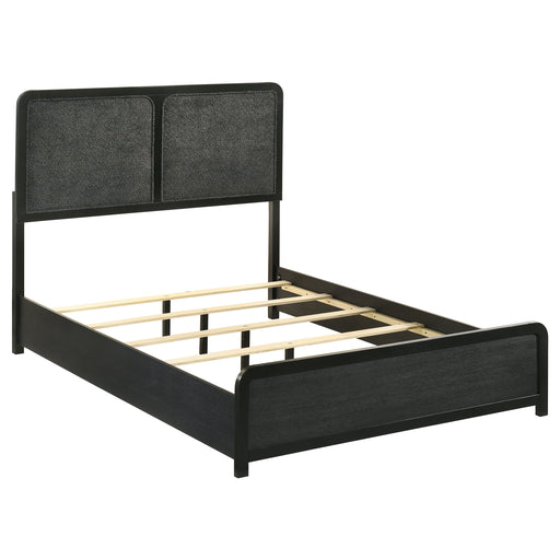 CoasterUpholstered panel bed introduces a tailored modern presence with a tall framed headboard featuring two inset charcoal chenille panels. A burnished ...