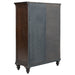 This door chest combines classic style with functional storage, making it a unique addition to your bedroom. It features six spacious drawers alongside a four-tier cabinet with tempered glass framed by solid wood, offering a display space for decor or easy access to folded clothing. The dark oak finish brings warmth and depth to the piece, while the gunmetal hardware offers a subtle modern accent. Built from poplar and oak veneers, this door chest is both stylish and durable, perfect for adding both storage and character to your space.