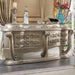 Feast your eyes upon the decadence and true luxury of the Danae collection of furniture! This striking bed defines opulence! Created to make a statement, this regal bed invites you to hold court in its divine carved curves and details. The Champagne finish and gold accents help enhance the sculpted features. Upholstered in luxurious PU, this bed is a stylish statement piece for any bedroom.