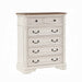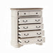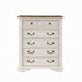 Classic design elements never go out of style the Florian chest is designed for the traditional home. The antique white finish gives off the right amount of distressing for a worn-in feel. The drawer fronts have raised panels to add visual interest. Offering a natural wooden finish top for contrast against the antique white finish frame. The drawers are full-extension and offer French dovetail fronts and English dovetail back construction. Comfortable, timeless, and stylish, this chest will bring a strong design presence to a room.