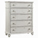 This Jaqueline chest will help with keeping a tidy bedroom with its five spacious drawers. English dovetail drawer fronts and backs provide strong construction for everyday use. The gorgeous traditional design of this chest showcases a sturdy wooden construction in a traditional antique white finish and sits on stylish wooden bun legs for extra pizzazz.