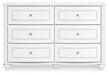 Fit for a princess. This dresser’s crisp matte white finish pairs with charming elements like bun feet, crystal knobs and ornate beading—the perfect crowning touches for your girly girl. This spacious six-drawer piece is sure to make your little one feel like royalty.