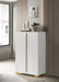 • Made of wood products with versatile finish and gold finish metal accents