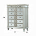 The Varian mirror provides a commanding presence in any room. Add a dash of glam to your bedroom with this Varian mirror. This gorgeous mirror is accented with raised geometric patterns and mirror finish. This fashionable chest will fuse with the surrounding Decor, transforming a room from ordinary into something interesting and sophisticated.