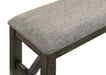Featured-4 Cozy Bench: Easy-care polyester and cotton blend gray fabric wrap the resilient foam seat cushion, making this a perfect for extra dining rooms seating or an entryway bench.