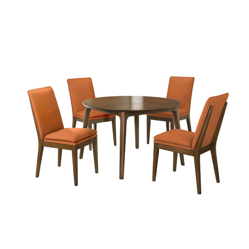 New ClassicThe Rex 5 Piece Mid-Century Modern Wood Dining Set in Walnut Brown is a perfect choice for small space dining. This set includes a round dining tab...