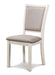 Featured-2 Farmhouse Two Tone Bisque and Brown Finish - Multistep creamy bisque white finish on the chairs and table base, crowned by a warm brown table top highlight the beautiful grain of the wood