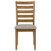 • Warm brown 5-piece dining set includes table and four ladder-back chairs