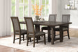 The Cityscape 5-Piece Dining Set offers a perfect balance of style, durability, and functionality, making it an excellent choice for modern dining spaces. This set features a rectangular dining table crafted from Rubberwood solids, manufactured woods, and real Oak veneers, ensuring long-lasting strength while highlighting the natural beauty of wood. The sleek design and dark walnut finish bring a modern yet timeless aesthetic with a touch of industrial flair. The four side chairs are designed for comfort with resilient foam cushioning and soft, easy-care 100% polyester upholstery. The spacious table top provides ample room for dining and entertaining up to six guests, making it a versatile centerpiece for family meals or gatherings.