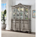 The Ariadne hutch and buffet is a stylish and functional piece of furniture designed to enhance both the aesthetics and practicality of your dining or living space. This hutch and buffet has a classic design, crafted from high-quality materials. The piece is finished in a beautiful antique platinum. The hutch section of this piece features multiple glass shelves. These shelves offer an elegant way to display your fine china, glassware, or decorative items, adding a touch of sophistication to your dining area. To enhance the display and create an ambient atmosphere, the hutch may come with a touch-sensitive light feature. A gentle tap on the designated area will illuminate the glass shelves, allowing your showcased items to shine brightly, even in low-light conditions. The buffet section typically includes two storage drawers. These drawers offer a convenient space to keep various dining essentials, such as tablecloths, napkins, utensils, or other accessories, neatly organized and easily accessible. Beneath the storage drawers, the buffet may have two closed lower cabinet spaces. These cabinets provide concealed storage, keeping your items hidden from view and dust-free. The cabinets are likely equipped with doors that can be opened and closed easily.