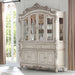 Exclusively designed and filled with romantic spirit, this hutch and buffet with oversized crown and golden ivory finish. This stylish and detailed collection is ideal for a large gathering and will add elegance to any dining room Decor.