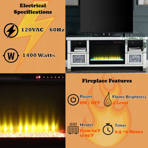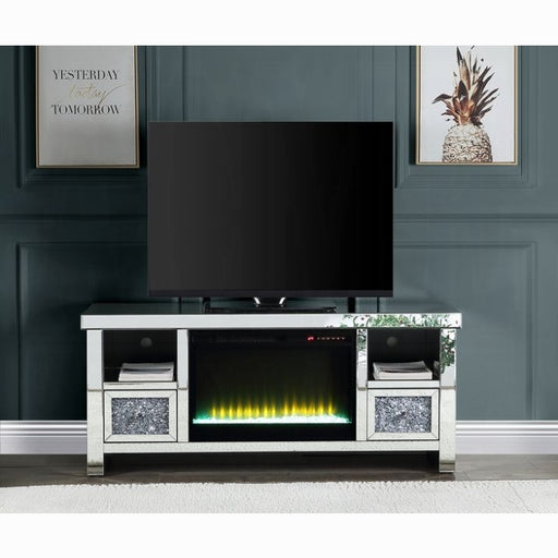 Acme Furniture IncExuding glamour the Noralie TV stand with a fireplace will light up the room. With a glimmering mirrored and faux diamonds finish reflecting light ...