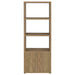The best of both worlds, a charming media tower bookcase adds both open display space and hidden storage in your inviting living room. Featuring a melamine paper finish that resembles mango wood, complete with roughhewn saw marks for a realistic, textured presentation, the tower is a perfect choice alone or flanking the matching TV stand. Three upper shelves provide a place for photos and art and glasswork, or can be used to display favorite media. Underneath, a two-door cabinet reveals additional shelving for easy organization of accessories and other odds and ends you'd prefer tucked out of sight. Sleek black pull handles are a perfect finishing touch.