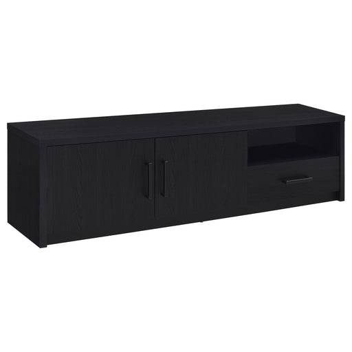 Coaster63-inch TV stand with SmartTop high-pressure laminate surface delivers durable performance for everyday media use. Two cabinet doors flank an open ...
