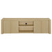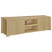 • Light oak 78-inch TV stand features four doors and open center shelving