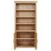 This bookcase cabinet combines open shelving with enclosed storage to create a balanced home office display and organization piece. A tall rectangular silhouette frames three open shelves above a two-door cabinet, offering space for books, decor, and office essentials. Framed doors and straight square legs reinforce the structured profile. Ash veneer surfaces supported by durable wood construction highlight natural grain while keeping the piece grounded and practical for everyday workspace storage.