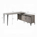 Give you a cozy and personal style workspace that surrounds you with everything within arm's reach. The Zakwani Writing Desk provides an L-shaped tabletop, and a storage cabinet on the right side features two sliding barn doors for extra privacy and style. The warm oak finish on its wooden frame showcases a rustic allure and intriguing textures, with metal hardware for a little more industrial chic. There is a cable management hole on the tabletop that allows you to set any essential office equipment. Six storage compartments behind sliding doors keep your office supplies and paperwork handy.