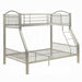 The Cayelynn bunk bed is a great way to free up space in a kids bedroom. It is a round metal tube design and features a built in ladder to the upper twin bed that also has a guardrail. This bed is available in black and silver.
