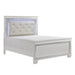 Glamour reigns in the design of the Allura Collection. Framing the Full bed is a decorative beveled mirror accent that enhances the illumination from the touch-engaged LED backlight of the headboard. Alligator embossing and high polished crystal-enhanced hardware boldly accent the white finish as does the pearl-white faux leather crystal-tufted headboard insert.