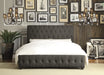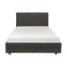 A rolled and tufted headboard provides elegant touches to the casual Baldwyn Collection. Offered in dark gray fabric, this Full bed offers not only flexible placement, but the opportunity to style the room to fit your needs.