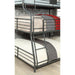 Take it back a few decades with this industrial inspired bunk bed. The visible piping framework is finished in antique black to create an authentic throwback atmosphere. This three tiered bunk has a unique look with its staggered bed sizes and a swooping curved ladder. The twin on-top-of full on-top-of queen size beds can accommodate a variety ages and sizes.