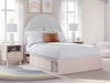 Pretty in pink. This full upholstered panel bed with storage keeps the spirit of your home’s modern aesthetic while suiting all your young one’s needs. Its cozy-cute upholstery and subtle blush finish bring a playful, charming vibe to bedtime. Made for her and styled for you, it’s a lovely addition to a beautifully chic child’s bedroom.