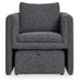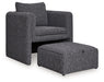Create a stylish retreat with this space-saving accent chair and ottoman set. Its sophisticated charcoal and black upholstery adds modern elegance to small apartments, living rooms, dorms and more. Curl up and relax in the cozy embrace of the chair— and when you need to put your feet up, simply pull out the ottoman that tucks neatly underneath. The best part? This set arrives fully assembled.