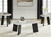| Details | Includes coffee table and 2 end tables, Made with decorative laminate and MDF substrate, Tabletop with replicated Carrara marble laminate, Legs with replicated black wood grain, Assembly required | |