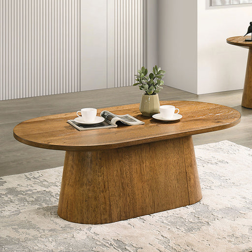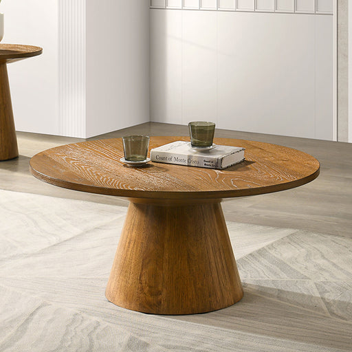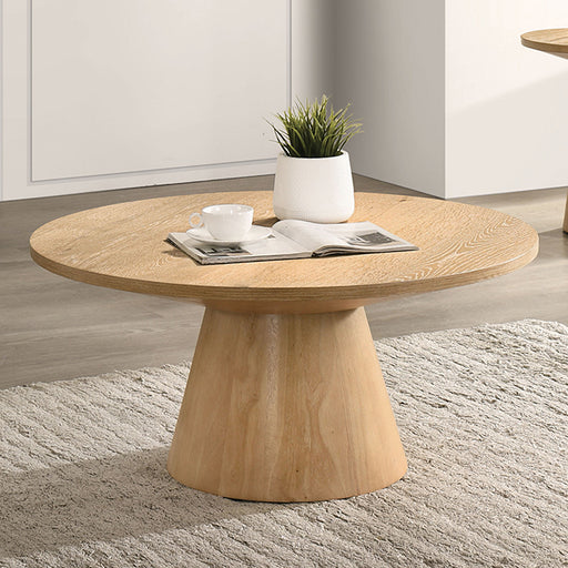 Furniture Of AmericaSpecifications Dimensions COFFEE TABLE: 36"W X 36"D X 18"H, END TABLE: 24"W X 24"D X 24"H Feat1 Contemporary Feat2 Natural Feat3 Paper Venee...
