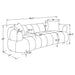 Channel tufted boucle sofa set creates coordinated curves and ribbed texture for modern living rooms. A plywood and wood frame supports foam cushioning with polyester fiber fill, wrapped in 100% polyester boucle. Rounded arms and low profiles keep the silhouettes clean, while loose back pillows add relaxed support. Vertical channeling across seats and backs creates dimensional style. Use this seating group to anchor conversation and invite everyday lounging.