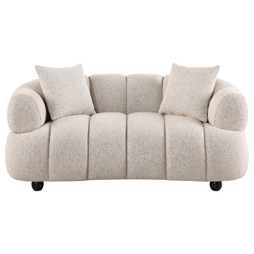 CoasterChannel tufted boucle loveseat brings sculpted curves and ribbed comfort to smaller rooms. A plywood and wood frame supports foam cushioning with p...