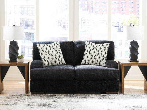 Signature Design by Ashley®Clean lines and a streamlined silhouette define the architectural attitude of this loveseat. Textured accent pillows in complementary colors add su...