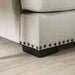 A mixture of classic elements and modern design, this loveseat will bring a load of style to your home. Cushions are T-shaped, allowing for the seats to wrap around in front of the slightly-flared armrests, gently sloping inward for a perfect fit. The back pillows are removable and plush for a cool, laid-back attitude. In front, the bottom edge is lined with individual nailheads, hammered one by one with care. The dark pillows and eclectic patterns provide an eye-catching contrast to the light gray base of the linen-like fabric.