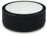 Elevate your living space with sleek sophistication. Sporting a bold drum silhouette in a matte black finish, this coffee table is topped with faux Carrara marble for a high-end look without the high maintenance. Trend-right reeded details add texture and visual interest. Subtle casters make the table easy to move when you need extra space, adding flexibility without sacrificing style.