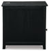 Add big character to a small space with this chairside end table. With its compact size and strong silhouette, it can go anywhere and blend easily into the decor. Less is so much more with the Shaker-inspired design and black wood tone finish. Loaded with form and function, this end table displays accent pieces and stores essentials securely while keeping devices powered up.