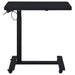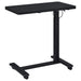 • Black side table pairs a pneumatic adjustable top with a mobile C-shape frame