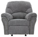 Why sacrifice comfort for style (or style for comfort) when you can have the best of both in this rocker recliner in pewter gray. Elements include a chic divided-back design and pillow top wrapped armrests that make nodding off all too easy. Calling attention to the elegantly flared armrests—black nickel nailhead trim for a punch of cool character.