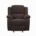 Upholstered in velvety brown chenille, the Madde recliner is not only supremely comfortable, but also durable. This is great news because once you sink into one of these pillowy seats, you won't want to get up! The tight back and seat cushions and pillow-top armrests are excellent for relaxing. The reclining mechanism is right within hand's reach with the external pull-handle latches. Bring home the unbeatable combo of comfort and convenience with Kalen!