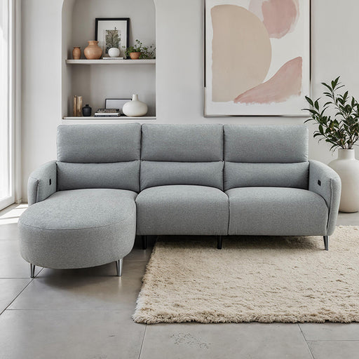 CoasterPower reclining sectional sofa in steel grey fabric creates a relaxed lounge zone for the living room. A three-piece configuration supports stretch...