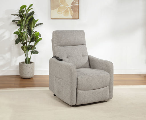 CoasterPower lift recliner chair creates a calm landing spot with a tall, segmented back and padded arms for sink-in comfort. Upholstered in polyester fab...