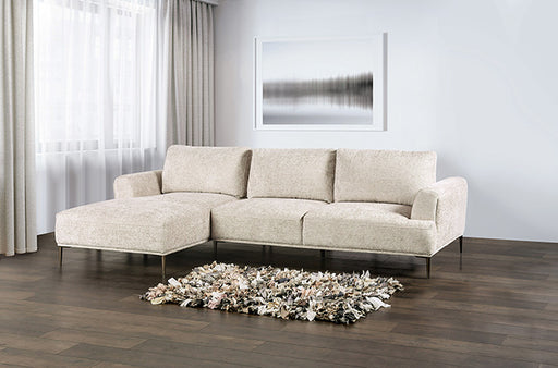 Furniture Of AmericaSpecifications Dimensions 113"L X 67"W X 33"H (SEAT HT: 17 3/4", SEAT DP: 22") Feat1 Contemporary Feat2 Beige Feat3 Chenille, Metal, Solid W...