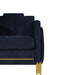 Introducing the Empire Sofa, a durable and stylish addition to your living space. Crafted with an eco-friendly manufactured wood frame, this 3-seater couch ensures lasting strength and durability. Upholstered in luxurious 100% midnight black polyester velvet fabric, it adds a touch of sophistication to any room. The modern metro style, featuring tiered panels and gleaming gold accents, captures the enchanting ambiance of a city skyline under the stars. Experience added ambiance with blue LED accent light strips on the side panels, effortlessly controlled with the touch of a button. Enjoy supportive seating with high-density full foam cushions, providing resilient and comfortable support. Upgrade your living room with the Empire Sofa, where style meets durability for unparalleled comfort.