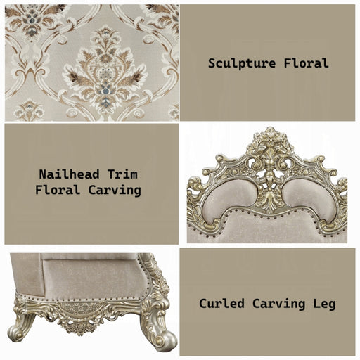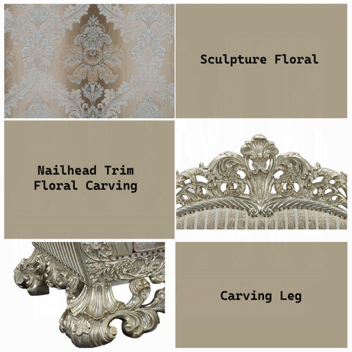 Acme Furniture IncThis beautiful elegant sofa set blends classic French and European inspired Victorian-era elements into one. The luxurious champagne finished, crys...