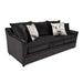 Featured-2 Cozy-Easy Care Fabric: 100% Polyester dark gray upholstery is carefully tailored and complemented with coordinating accent pillows.