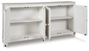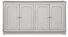 Con su acabado de pintura vintage desgastada, detalles acanalados y molduras de estilo provincial francés, este exquisito gabinete seguramente adornará su espacio de una manera muy elegante. El almacenamiento con estantes ajustables es sumamente práctico, ya sea en un comedor, una sala de estar o una entrada.